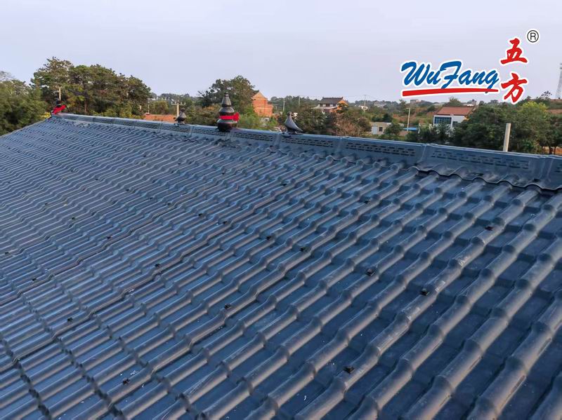 合成樹脂瓦的建筑簡易,施工期短:所有構(gòu)件均在工廠預(yù)制的完成,現(xiàn)場只需簡單的一種拼裝,從而大大縮短了施工的具體周期,一座大約6000平方米的建筑物,只需大概40天即可基本安裝完成。